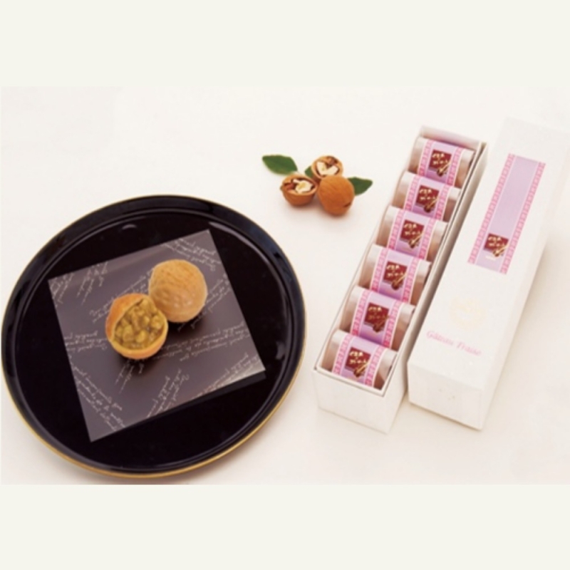農林水産大臣賞受賞 まろやかでクリーミィな味覚とサクッとした食感。 なつかしいキャラメル風味のヌガー。 一度召し上がれば忘れられない味覚です。 最中の中身は厳選されたくるみのヌガー。 洋風の最中はガトーフレーズが全国に先駆けて商品化しました。 今まで出会ったことのないユニークなお菓子と大好評です。 創業時からのベストセラー。 日本初洋風最中 賞味期限:常温60日