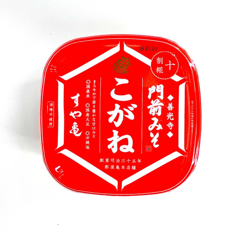 国産の大豆と国産米の糀をたっぷり使い、念入りに仕込んだ香り豊かな甘口みそ「こがね」みそは、すや亀でも一番人気の味噌。門前みそこがねの無添加・生みそを、使いやすい、500gの使いきりタイプのカップ型にしました。しかも浅型タイプなのでおたまでもすくい易く、冷蔵庫の隙間にもしまいやすいサイズ・深さです。