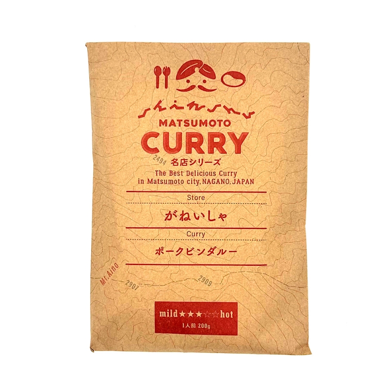 お酢でマリネした豚肉が入った酸味と辛さが楽しめる【ポークビンダルー】。がねいしゃのスパイスが加わって他にはない奥深く誰にも真似できないカレーに!!