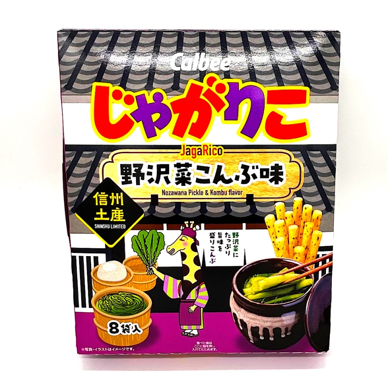 独自の製法で”はじめカリッとあとからサクサク”の心地よい食感が楽しめるスティックタイプで、通常のじゃがりこよりも短めになっています。 信州でなじみのある「野沢菜こんぶ」の風味が楽しめます。漬けられた野沢菜の程良い酸味の後に、昆布だしのまろやかな旨みが口の中に広がります。 賞味期限 6ヶ月