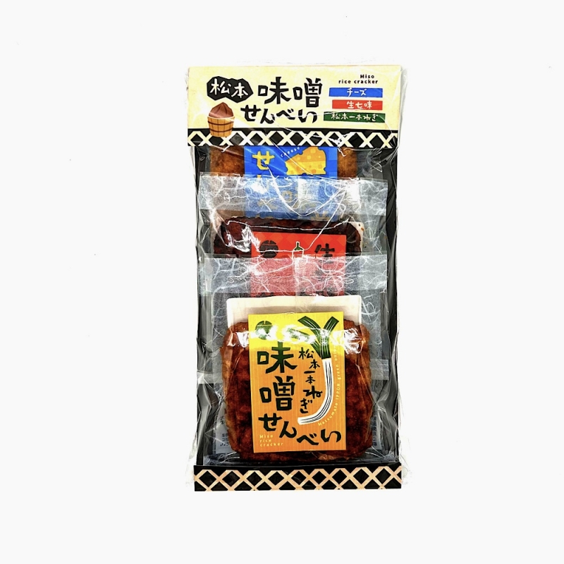 うるち米(国産)、砂糖、みそ、ねぎ、青唐辛子、米こうじ、ゴマ油、昆布エキス、白ゴマ、植物油、焼酎、みりん、醤油、発酵調味料、でん粉、液体調味料、ブドウ糖果糖液糖、蜂蜜、カツオエキス、食塩、デキストリン調味料(アミノ酸等)、(一部に小麦・サバ・大豆・ごまを含む)