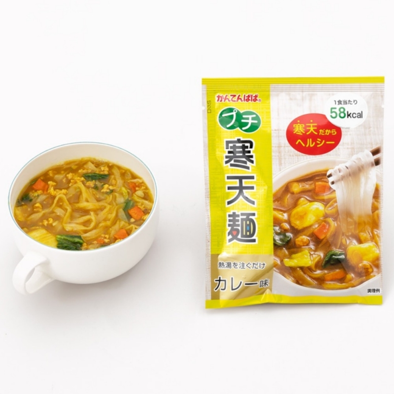 寒天を使用した麺だから、とってもヘルシー。 マグカップサイズなのでランチや夜食にぴったりです。「カレー味」はかつおだしのきいた和風カレー味。 内容量 1食分19g