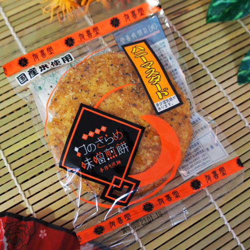 味噌煎餅に、マスタードの香りが引き立つ、癖になる一品。 マヨネーズも加わってコクがあり、マスタードの辛みも楽しめる、お茶にも、ビールのおともにも合う大人な商品です。