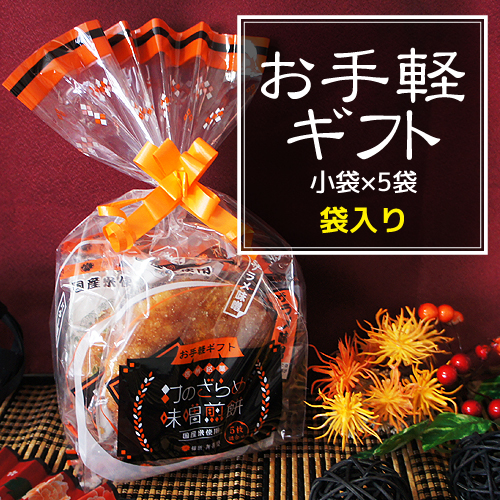お中元・お歳暮などにはもちろん、結婚・出産・節句・入学・ご長寿等のお祝いに、当店のお煎餅はいかがでしょうか。 お祝いにいただいたお客様が、ご自分でまた食べたいと買いにきてくださる方がとても多いです。 和心こめてあの人へ、真心こもった手作り煎餅を。 内容 ざらめ味噌・くるみ味噌・ねぎ味噌・ごま味噌・甘辛みそ各1枚入