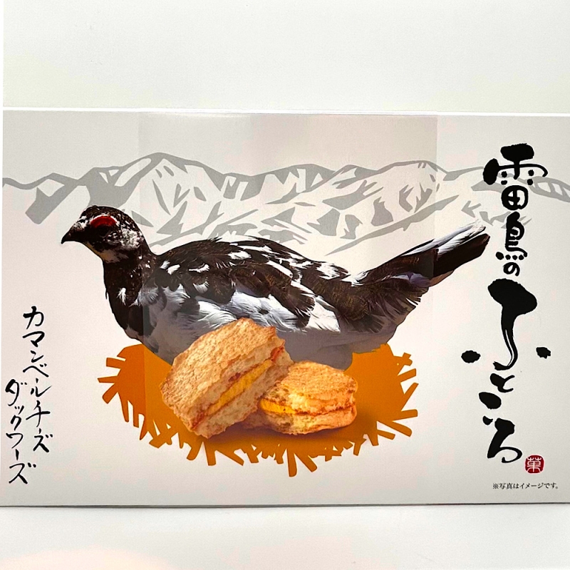 雷鳥のふところ カマンベールチーズダックワーズ 卵白(国産)、砂糖、アーモンドパウダー、ショートニング、粉糖(砂糖、コーンスターチ)、小麦粉、カマンベールチーズパウダー、乾燥卵白、寒天/加工でん粉、香料、酸味料、乳化剤、安定剤(増粘多糖類)、着色料(カロテン)、(一部に卵・小麦・乳成分・アーモンド・大豆を含む)